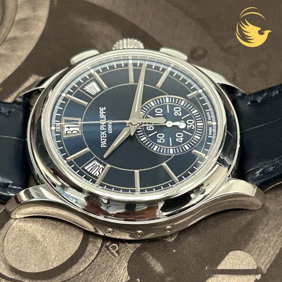Cùng với Lịch thường niên, chức năng Flyback Chronograph của Patek Philippe Complications 5905P-001 cũng vô cùng ấn tượng. Sử dụng bộ máy chuyên biệt, Flyback Chronograph có độ chính xác vô cùng cao, hoạt động dễ dàng và tiện lợi cho người sử dụng. Tại mốc 6h, mặt số phụ Chronograph được tích hợp đếm giây và phút trên cùng một vị trí.