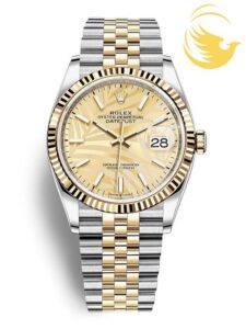 Rolex Datejust 126233 sở hữu ngoại hình tinh tế cùng họa tiết mặt số cây cọ mới lạ, pha trộn bởi 2 chất liệu vàng 18K và thép 904L độc quyền Rolex. Sở hữu mặt số tròn 36mm cùng dây đeo Jubilee, chiếc đồng hồ mang dáng vẻ kiêu kì của thiết kế Rolesor hiện đại hơn là nét cổ điển mà nó vốn có.