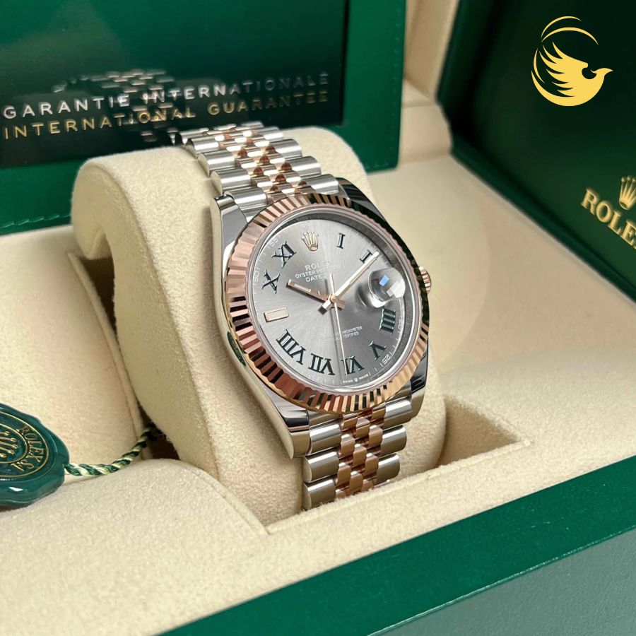 Cuối cùng, khép lại sự hoàn hảo, Rolex Datejust 126331-0016 được trang bị với dây đeo Julibee nối 5 mảnh kết hợp với khóa gập, được làm từ chất liệu thép không gỉ và vàng Everose 18K.