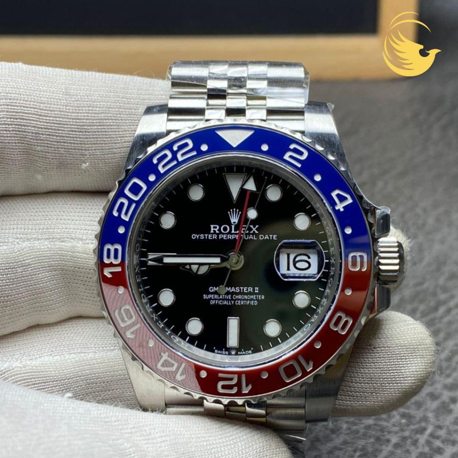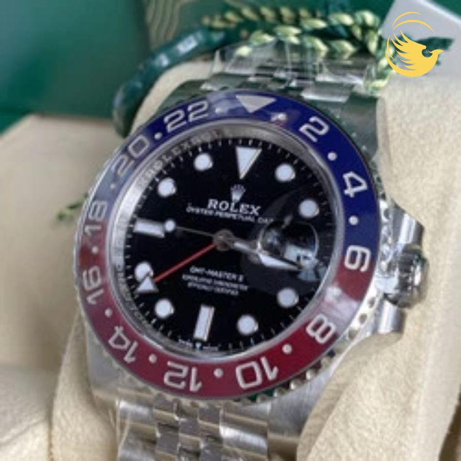 Bezel: Vành đồng hồ chia 24 vạch đếm giờ xoay 2 chiều. Cerachrom nhị sắc đỏ và xanh