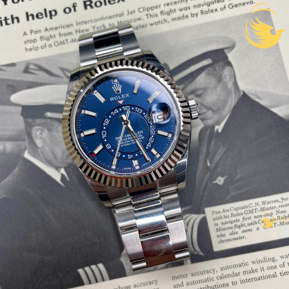 Rolex Sky Dweller 326934 42mm thuộc dòng Sky-Dweller của thương hiệu Rolex, mẫu đồng hồ này được thiết kế dành cho những đối tượng như phi công hay những người thích du hành, dịch chuyển và kể cả những ai thích dòng đồng hồ này của Rolex cũng đều phù hợp. Mang vẻ đẹp mạnh mẽ và đầy táo bạo, vận hành bởi bộ máy siêu bền bỉ và chính xác, đồng thời chịu được những tác động áp lực từ bên ngoài.
